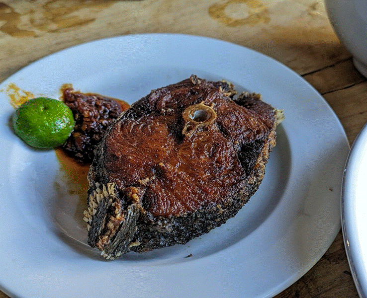 Must-Try Dishes: The one and only set menu, which includes a portion of crispy fried fish, a bowl of rich and spicy fish head soup, and a side of rice. All of this for the unbelievable price of IDR 55,000 (around $3.50 USD). The fish is perfectly seasoned, and the soup is a flavor explosion.